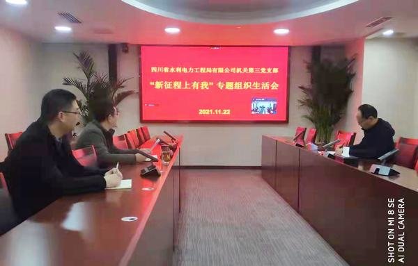 2021年11月22日,為弘揚“自力更生,艱苦創業,團結協作,無私奉獻”的紅旗渠精神,按照川水黨[2021]147號文件要求,公司機關第三黨支部在成都總部會議室和資陽辦公區301會議室召開“新征程上有我”專題組織生活視頻會議。公司總工程師、副總經理汪輝德,副總經理董蜀良以普通黨員身份參加會議。支部書記丁毅主持會議。