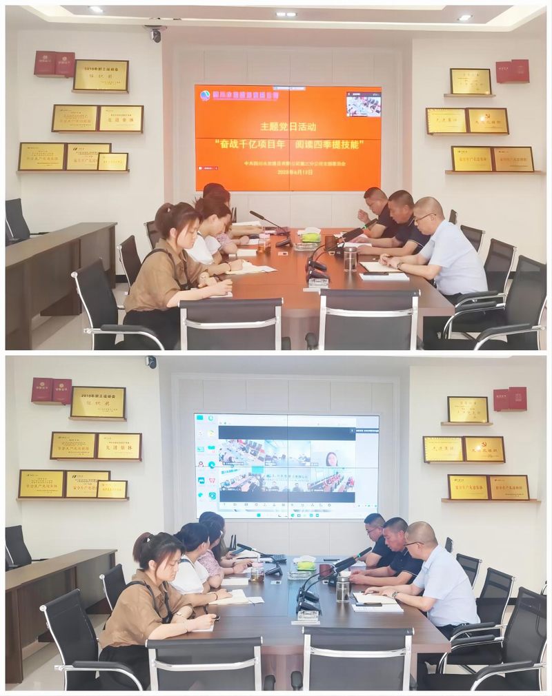 2023年6月13日,三分公司黨支部在都江堰水利大廈組織開展 “奮戰千億項目年 悅讀四季提技能”及安全生產主題黨日活動。三分公司全體黨員干部(龍塘項目、亭子口項目、龍興壩項目、隴西項目黨員以視頻形式)參加會議,會議由三分公司黨支部書記毛偉主持。