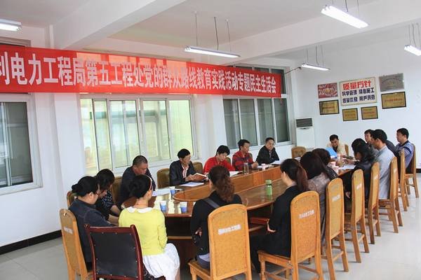 2013年9月7日上午,第五工程處在局機械廠會議室召開了黨的群眾路線教育實踐活動專題民主生活會。局黨委副書記、紀委書記高本祥到會作重要講話。黨委委員、辦公室主任溫慶生,勞動人事處長舒建國,黨辦主任夏永紅到會指導。第五工程處黨政班子成員楊大國、陳道剛、袁小峰、李紹秋及黨員、職工代表共計20人參加了會議。