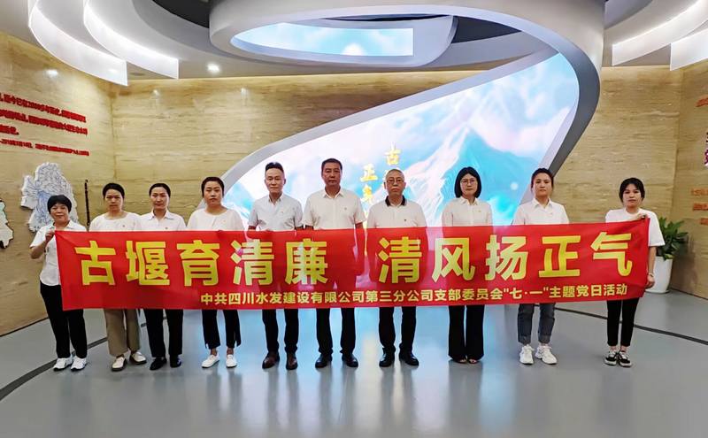 為慶祝中國共產黨建黨103周年,推進黨紀學習教育落地見效,強化新時代廉潔文化建設,筑牢廉潔思想防線。7月1日,三分公司黨支部組織黨員干部前往四川省都江堰水利發展中心“古堰清風”廉潔教育文化館,開展“古堰育清廉  清風揚正氣”主題黨日活動。