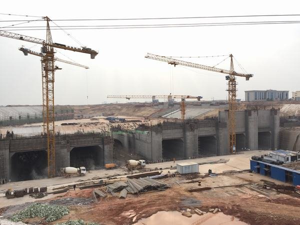 安裝間船閘副廠房基坑進(jìn)水流道進(jìn)水渠前池尾水流道溢流壩消力池縱向混凝土圍堰