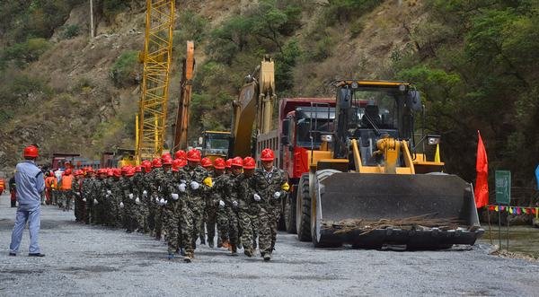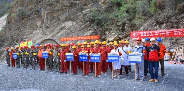 演練主要由高邊坡垮塌、山體滑坡及泥石流、施工用電中斷和通訊中斷三部分組成,對此三個預(yù)案的巡查、監(jiān)測、預(yù)警、撤離、救援、恢復(fù)等一整套應(yīng)急救援內(nèi)容進(jìn)行實戰(zhàn)演練。局三機處博瓦電站項目部共選派140余人參加演練,出動各類大型機械設(shè)備及車輛15臺(套)。