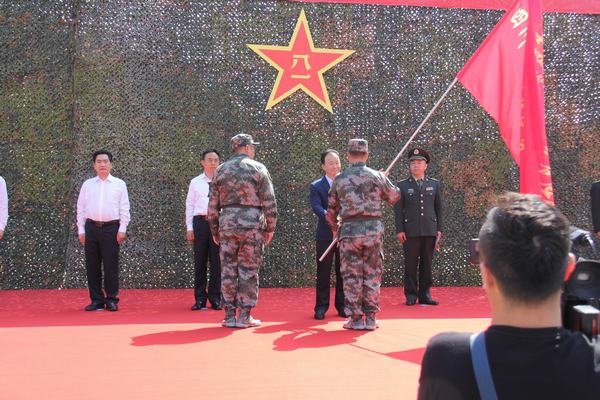 成立大會在《中華人民共和國國歌》聲中拉開序幕。大會宣讀了民兵干部任職命令和黨組織預建通知;陳吉明將印有“四川省民兵洪澇災害救援分隊”紅底黃字的旗幟授予我局救援分隊分隊長范雪山與指導員趙曉輝,并對資陽市民兵應急營、雁江區民兵應急連、安岳縣民兵應急連、樂至縣民兵應急連授旗;面對鮮紅的國旗,全體官兵莊嚴宣誓;資陽市民兵應急營一名民兵代表全體民兵表決心。