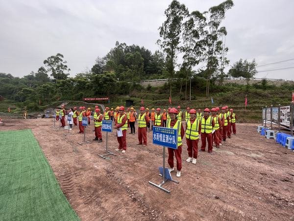 演練模擬場(chǎng)景為自貢市榮縣全面進(jìn)入主汛期,榮縣境內(nèi)發(fā)生強(qiáng)降雨,有可能發(fā)生山洪、泥石流、坍塌等自然災(zāi)害,將危及瓦店子提灌渠2#隧洞出口作業(yè)面安全,演練按照突發(fā)事件、預(yù)測(cè)預(yù)警、應(yīng)急響應(yīng),涉險(xiǎn)人員、設(shè)備安全撤離,突發(fā)事件應(yīng)急處置等內(nèi)容進(jìn)行實(shí)戰(zhàn)演練。