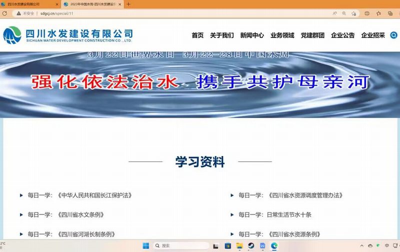 水,利萬(wàn)物而不爭(zhēng);水,人類(lèi)生存之本。2023年3月22日是第三十一屆“世界水日”,3月22—28日是第三十六屆“中國(guó)水周”。在水利廳和集團(tuán)部署下,建設(shè)公司積極組織開(kāi)展以“強(qiáng)化依法治水?dāng)y手共護(hù)母親河”為主題的2023年“世界水日”“中國(guó)水周”活動(dòng)。