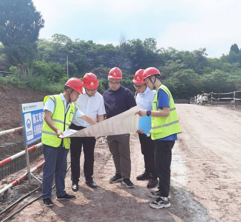 檢查組在公司總部召開座談會,認真聽取羅雪總經理對防汛安全生產工作的詳細匯報、仔細查閱了防汛資料,并深入都江堰灌區資中縣三黃支渠渠系配套工程項目8#暗渠、38#隧洞施工一線檢查防汛安全生產工作。