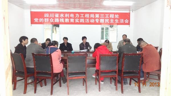 2013年11月10日下午,第三工程處在宜賓市筠連縣后溝水庫(kù)項(xiàng)目部召開了黨的群眾路線教育實(shí)踐活動(dòng)專題民主生活會(huì)。局黨委副書記、紀(jì)委書記高本祥,勞動(dòng)人事處處長(zhǎng)舒建國(guó),黨辦主任夏永紅到會(huì)指導(dǎo)。三處班子成員參加會(huì)議,后溝水庫(kù)項(xiàng)目部黨員職工及各科室主要負(fù)責(zé)人列席會(huì)議。會(huì)議由三處黨支部副書記周加利主持。