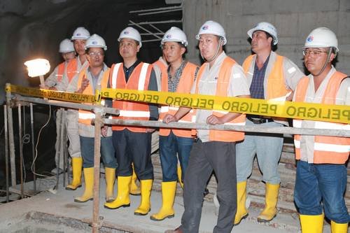 經(jīng)過(guò)兩天17000公里的長(zhǎng)途飛行,在抵達(dá)厄瓜多爾TP項(xiàng)目部后,鄔局長(zhǎng)不顧旅途勞累和時(shí)差影響,在項(xiàng)目部經(jīng)理高代勝、副經(jīng)理?xiàng)盥斆鳌⒗铎o、王安明等項(xiàng)目相關(guān)人員陪同下,先后到取水口閘壩樞紐、壓力隧洞進(jìn)出口、地下廠房、尾調(diào)室、泄水洞等施工現(xiàn)場(chǎng)察看,詳細(xì)了解施工技術(shù)方案、設(shè)備、材料、人員,特別是厄瓜多爾當(dāng)?shù)貏趧?wù)人員等具體情況,并不時(shí)提出指導(dǎo)意見(jiàn)。