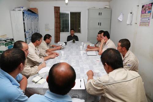 聽(tīng)取匯報(bào)后,鄔清富局長(zhǎng)首先代表工程局、局黨委向戰(zhàn)斗在遙遠(yuǎn)的異國(guó)他鄉(xiāng)的廣大職工和配屬人員表示親切慰問(wèn)。他對(duì)TP項(xiàng)目部前期的工作給予充分肯定,同時(shí),就今后的工作向項(xiàng)目部提出了三點(diǎn)要求:1、狠抓安全、質(zhì)量、進(jìn)度、環(huán)保工作,注意安全生產(chǎn),不能麻痹大意,進(jìn)一步提高砼質(zhì)量及外觀工藝,倒排工期,確保在2015年12月底合同工期內(nèi)順利完工;2、認(rèn)真研究合同,準(zhǔn)備資料,抓好結(jié)算;3、加強(qiáng)項(xiàng)目管理,加強(qiáng)人、材、物的管理,及時(shí)總結(jié)涉外施工管理經(jīng)驗(yàn)。最后,鄔局長(zhǎng)要求項(xiàng)目部、局工會(huì)要大力宣傳職工的愛(ài)崗敬業(yè)奉獻(xiàn)精神,進(jìn)一步關(guān)心涉外職工生活,努力幫助解決實(shí)際困難,切實(shí)讓職工感受到組織的關(guān)懷。