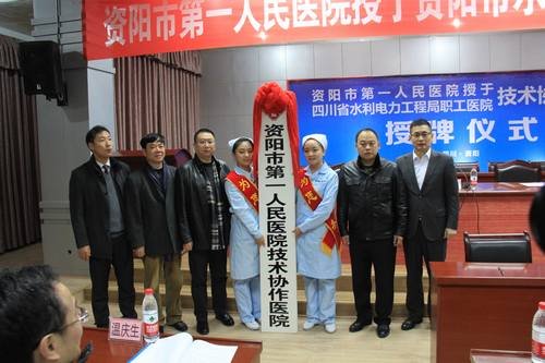儀式上,代勇代表四川省水利電力工程局向長期以來關心支持職工醫院建設和發展的各級領導、各界朋友表示衷心感謝!他指出,局職工醫院與資陽市第一人民醫院結為技術協作醫院,符合醫療衛生改革發展的時代潮流,符合醫院雙方發展愿景,對共同提升醫療服務發展水平,起到了極大的推動作用。同時對職工醫院的發展提出要求:職工醫院要緊緊抓住合作發展的大好契機,認真學習資陽市第一人民醫院先進的管理經驗、精湛的醫療技術、優質的服務和良好的工作作風,狠抓醫院內部管理,不斷改善醫療條件,著力緩解市民、職工看病難、看病貴的問題,把職工醫院建設好、發展好。并祝愿資陽市第一人民醫院與局職工醫院能夠優勢互補、合作共贏!