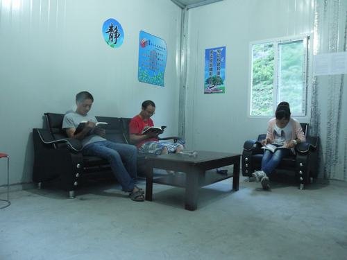 2015年8月12日下班后,局鑫宏公司固滴電站項(xiàng)目部3名員工津津有味的在工地閱覽室看書、工地籃球場上8名員工正在火熱上演一場籃球賽……
