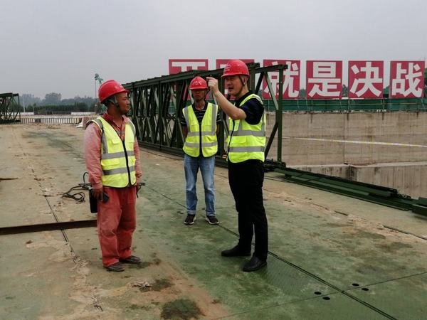 在項(xiàng)目經(jīng)理程靜、總工趙玉成等項(xiàng)目成員的陪同下,袁斌一行深入發(fā)電廠房、安裝間、貝雷橋搭設(shè)、二枯上游圍堰戧堤填筑處等施工部位進(jìn)行檢查,并對(duì)二枯施工規(guī)劃提出指導(dǎo)性意見。