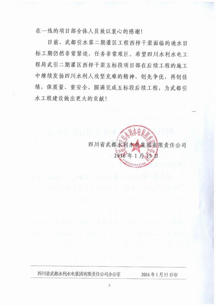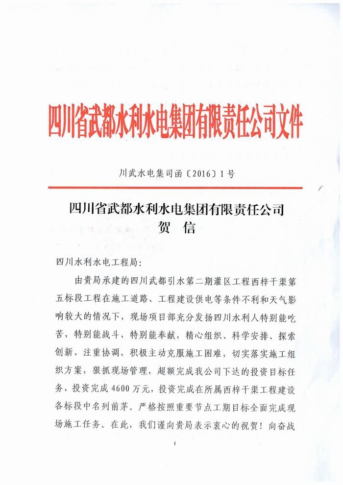 四川省武都水利水電集團有限責(zé)任公司致工程局賀信