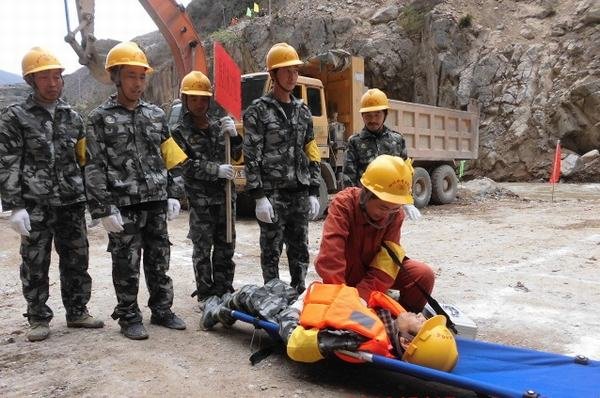 局三機處博瓦電站項目部為了圓滿完成任務,在應急演練前對各環節作了周密部署,先后完成了防洪度汛應急預案、演練方案的編制、度汛設備物資準備、人員動員、預演等工作。實施過程中,主要進行了洪水到來前的預警、人員逃生、現場應急搶險、設備物資撤離、人員受傷救護等科目的演練。
