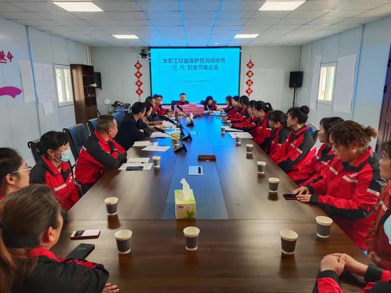 項目部有關(guān)負(fù)責(zé)人、全體女職工參加調(diào)研座談和慶祝活動。